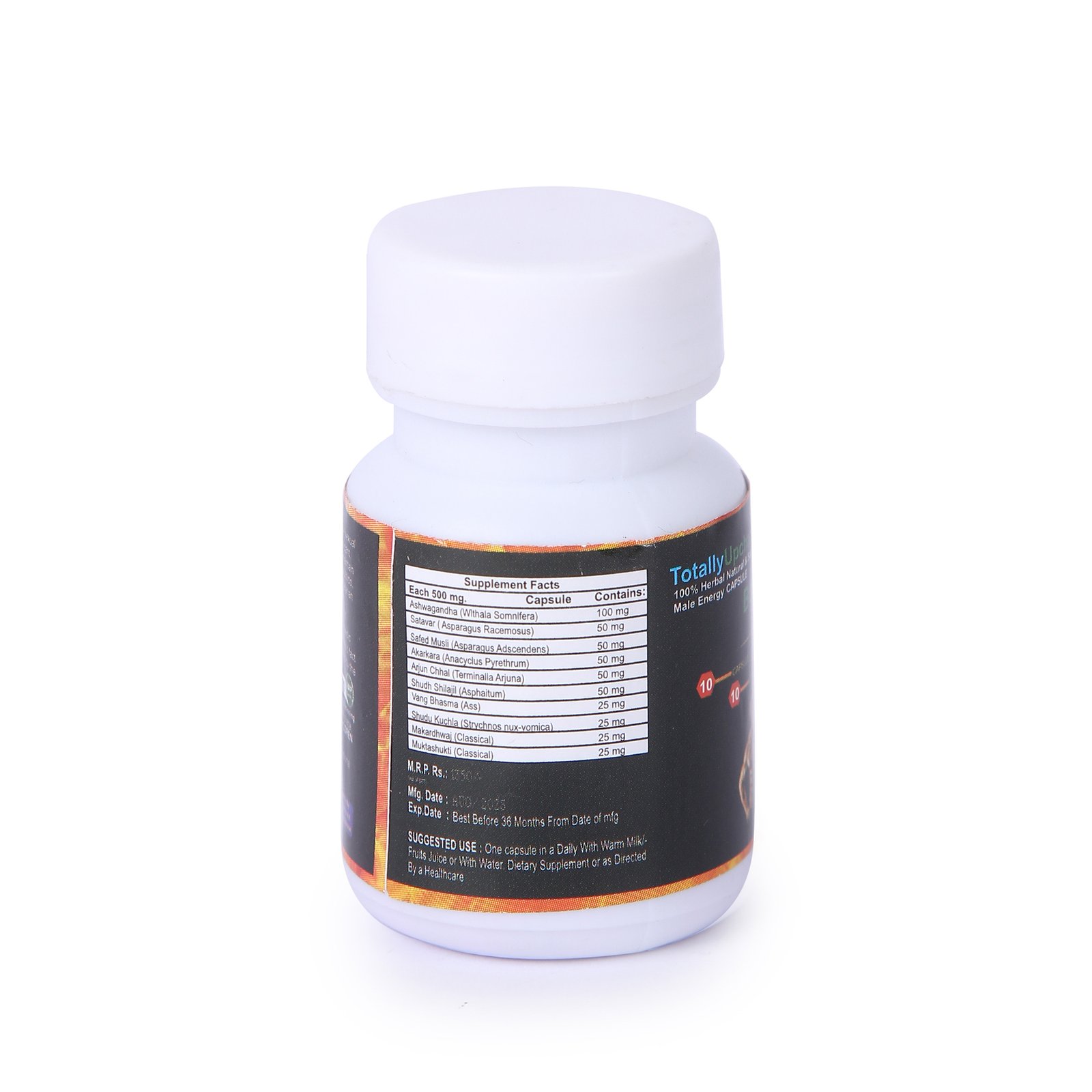 Shudh Shilajit (Asphaitum) Vang Bhasma (Ass) Arjun Chhal (Tarminalla Arjuna) Akarkara (Anacyclus Pyrethrum) Satavar (Asparagus Racemosus) Ashwagandha (Withala Somnifera) Safed Musli (Asparagus Adscendens) Makardhwaj (Classicl) Muktashukti (Classical) Shudu Kuchla (strychnos nux-vomica) Afgani Salmpanja
